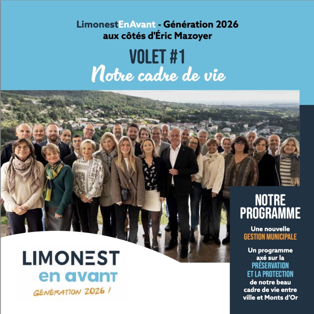 Notre ambition pour Limonest est clair : redonner du sens à l’action municipale et préparer l’avenir sans renoncer à l’identité de notre commune. Parce que Limonest mérite mieux qu’une gestion de routine, nous portons une ambition à la hauteur de ses habitants.